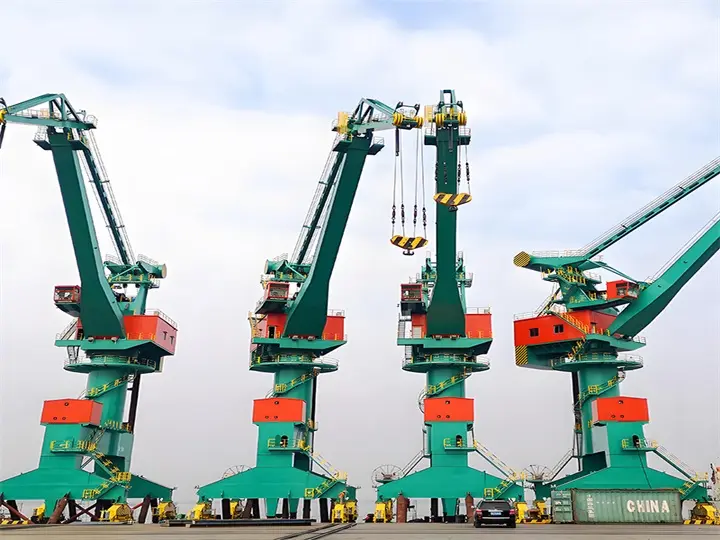 The Weihua portal crane is a large-scale slewing lifting equipment installed on dedicated tracks at port terminals. It features a classic and stable four-bar linkage jib system. This design ensures that the load maintains minimal horizontal height variation during luffing (changing the working radius), resulting in very smooth operation.